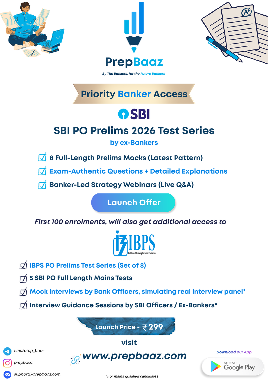 5 Full length Mocks, Interview prep by Bank Officers and much more